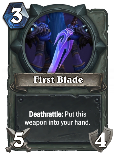 The set up of the encounter should encourage a wide variety of decks that are more specialized that ladder decks. The clock presented by constant damage from the weapon should encourage players to run more weapon removal, beyond a single Ooze or Harrison. It will also encourage more taunt minions to be played. Removing the weapon also slows Melandrus down, as it costs 3 mana to reequip. Rush decks may be able to take advantage of Melandrus’s relatively slower start, but may encounter some difficulty with the damage spells Melandrus has. I do worry that Melandrus may prove to be too difficult, as I have not playtested it. However, the difficulty can be adjusted through many knobs, include the Images’s health, the mana cost of the spells and the distribution of spells in the deck. In all honesty, I expect the Hearthstone AI to cast the hero power after the spells, making the encounter feel like WoW, in which Melandrus’s Images spawn after casting Blade Surge.